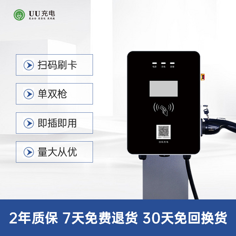 UU充电7KW交流汽车充电桩,壁挂式单枪价格一千块钱左右,适用于比亚迪、特斯拉、北汽、新能源等电动汽车充电。精致的外观设计,具有短路、过温、过流、漏电、过压等保护功能,安全可靠,又支持微信扫码、IC卡等支付方式,操作非常方便。室内外都可以使用,正面采用防雨防晒PC材质,3M胶塑膜,可以安心使用。