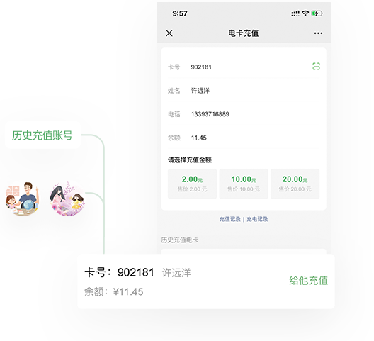 保留历史充值账号,充值无需重复填写,给父母电卡充值更方便了